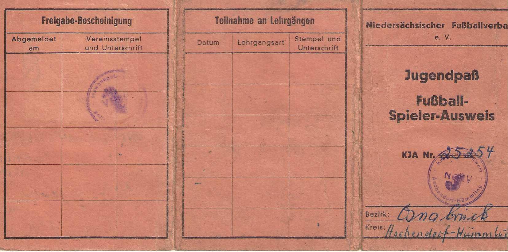 Danach gab es in meiner Jugendzeit etwas Besonderes: 1953 einen Lederball. Dieser Ball war mit Lederriemen in sich verknotet. Mein Vater hat ihn mir gekauft und ich glaube, ich war in sehr weitem Umkreis vom Emsland der Einzige, der als Kind einen Lederball Größe 4 besaß. Ich durfte ihn allerdings nicht mit zur Schule nehmen, damit alle damit spielen konnten. Da mein Opa mich dabei regelmäßig ertappte, gab es entsprechend Senge und nicht zu knapp.